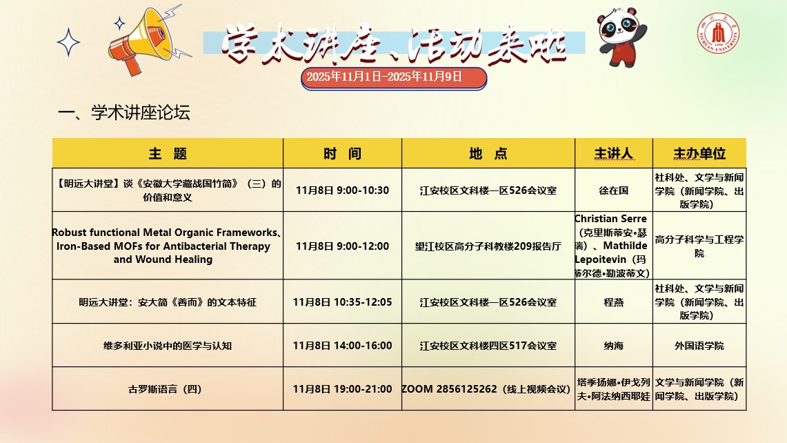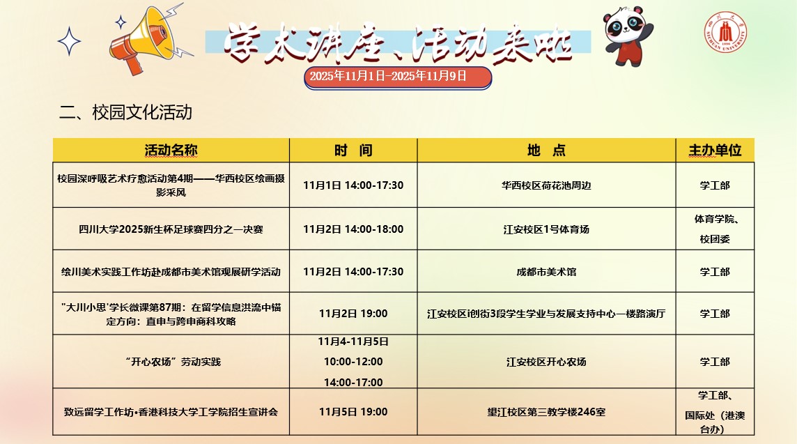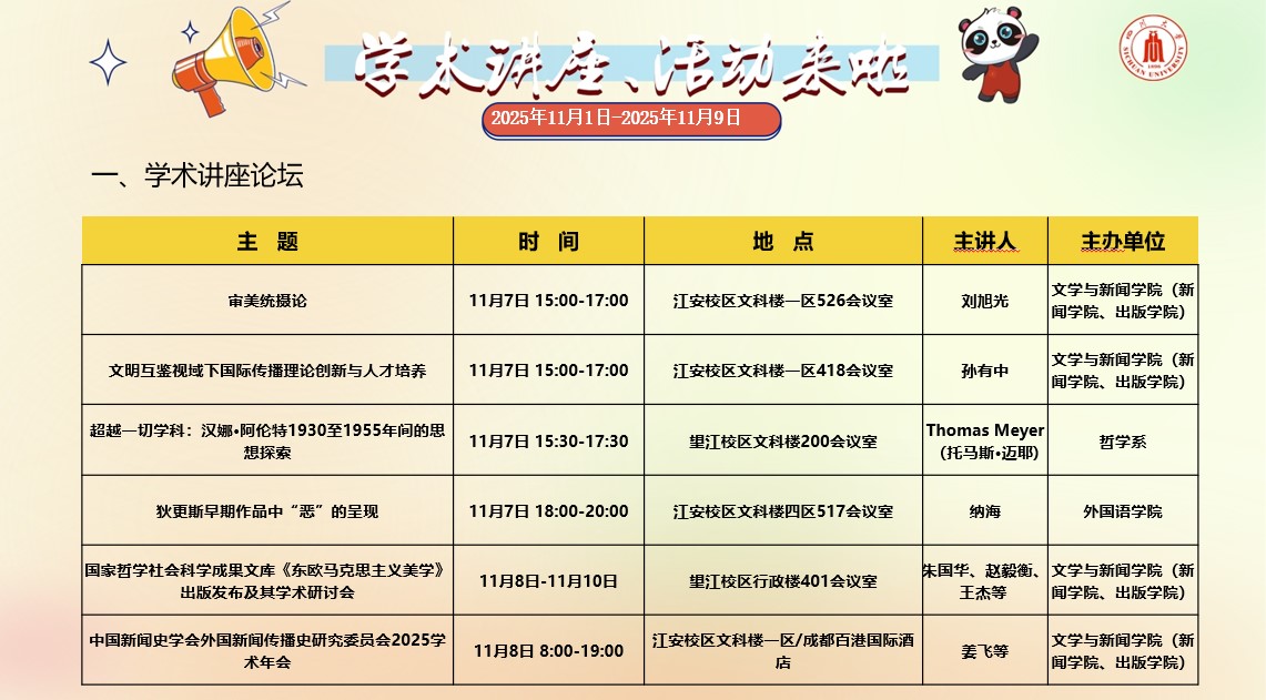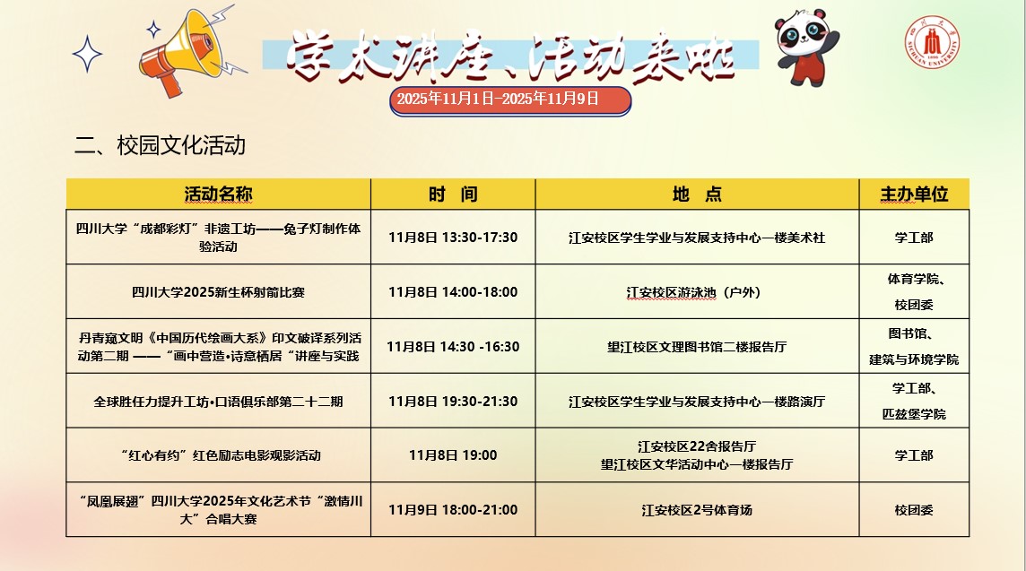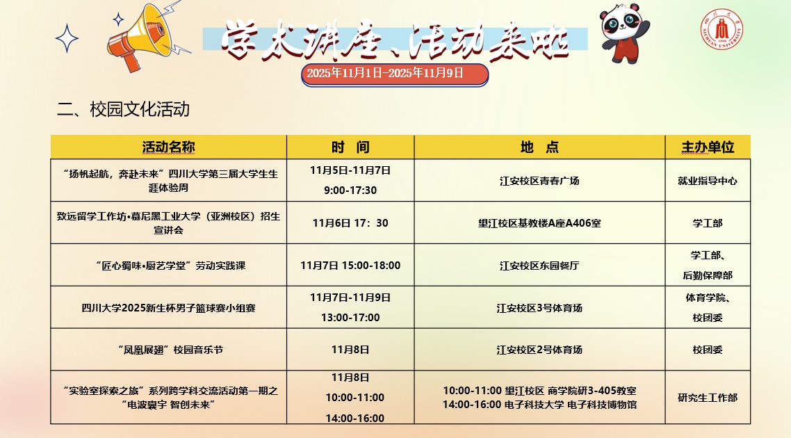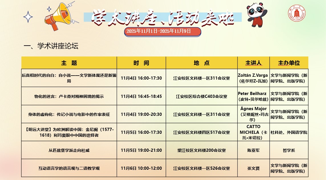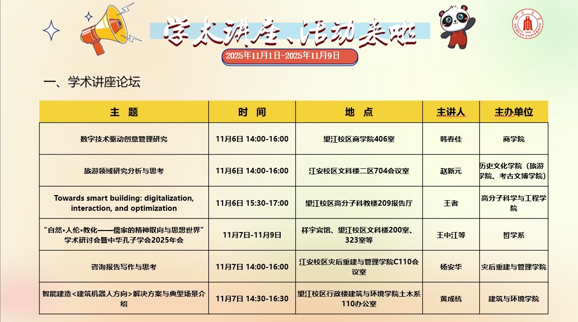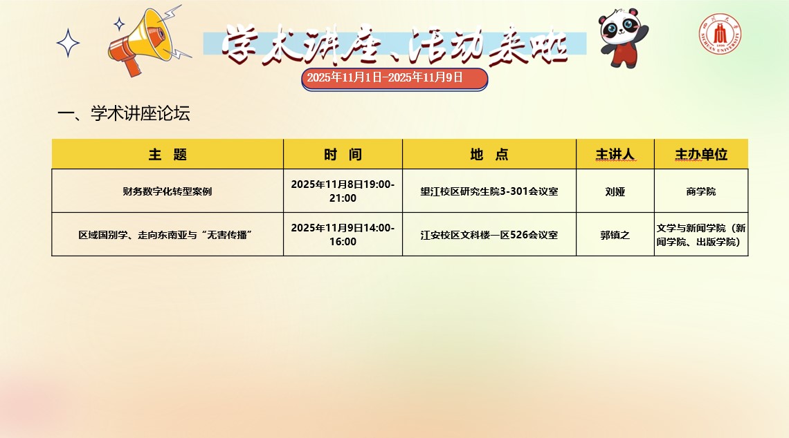 91黑料 2025年11月1日-11月9日学术讲座和校园文化活动预告