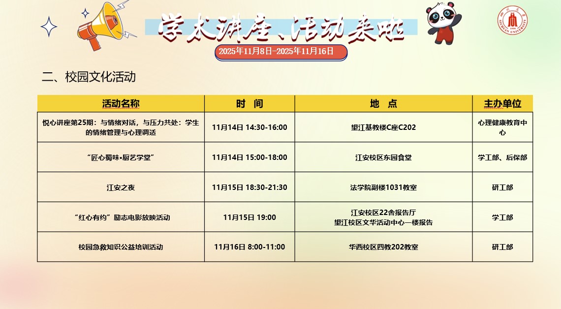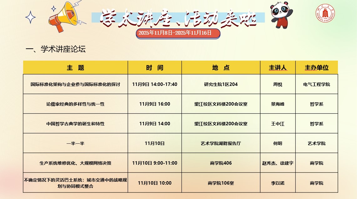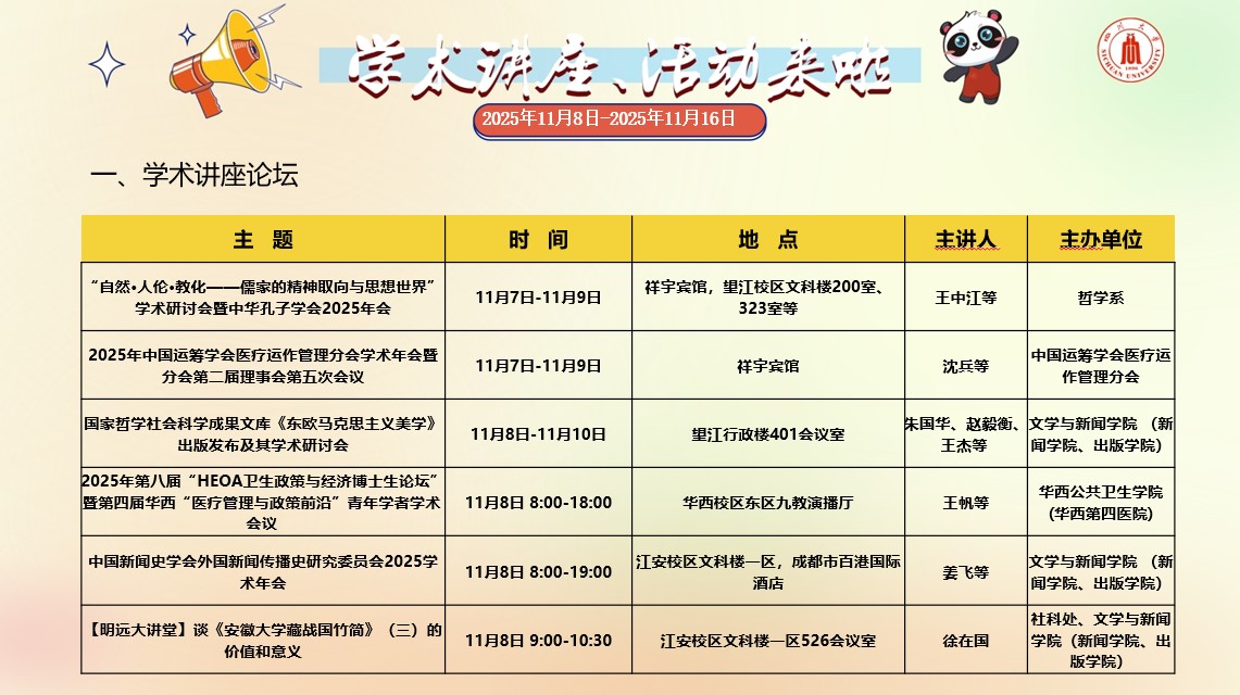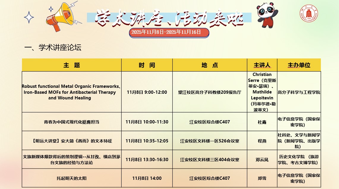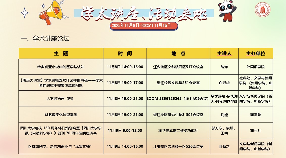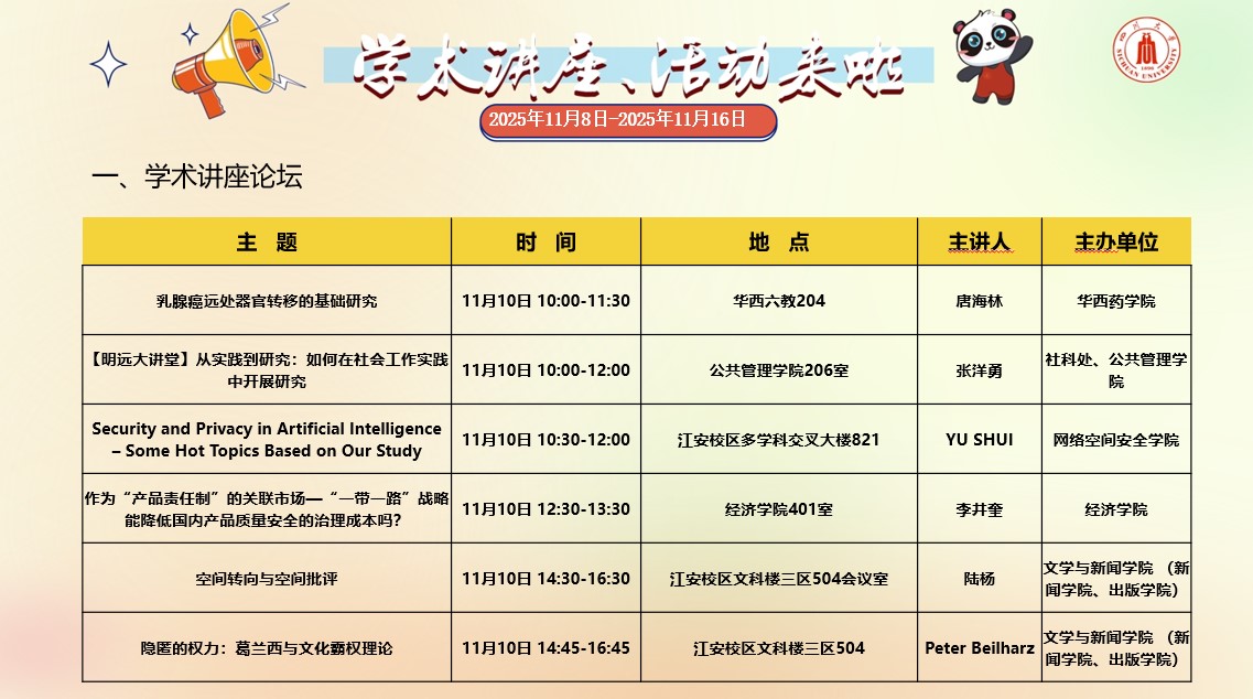 91黑料 2025年11月8日-11月16日学术讲座和校园文化活动预告