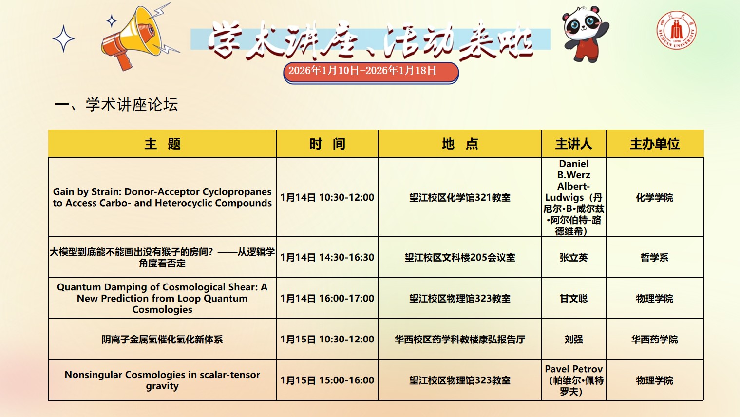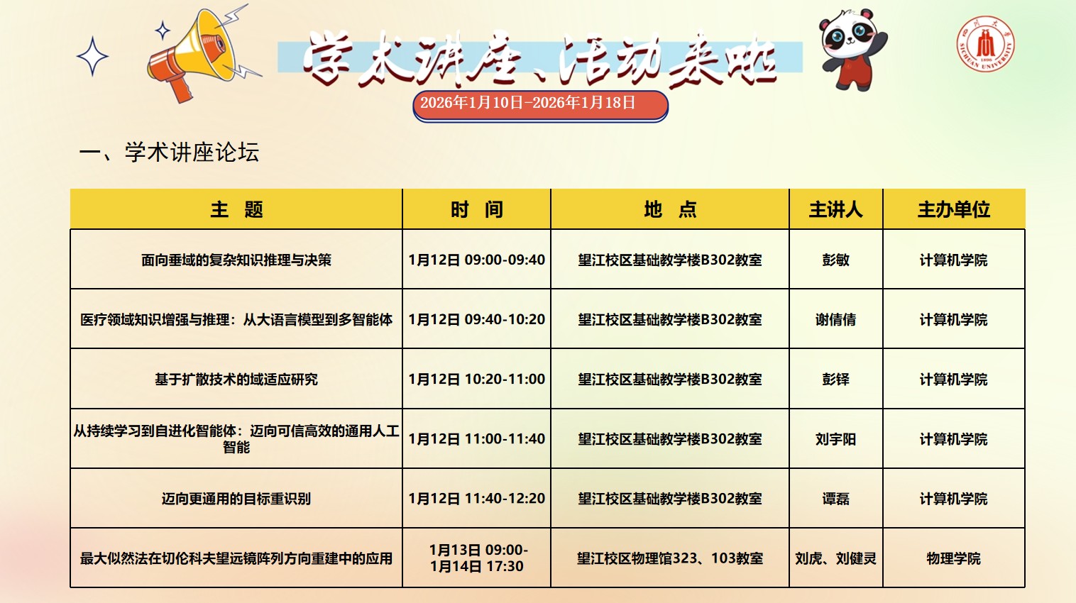 91黑料 2026年1月10日-2026年1月18日学术讲座预告