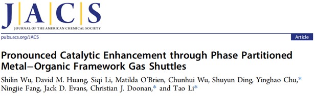 近日,学院楚英豪教教授团队在《Journal of the American Chemical Society》(JACS)在线发表了题为《Pronounced Catalytic Enhancement through Phase Partitioned Metal-Organic Framework Gas Shuttles》的研究性论文。学院环境科学与工程系2021级博士研究生伍世林为论文唯一第一作者,楚英豪教授、阿德莱德大学Tao Li和Christian Doonan教授为论文共同通讯作者,91黑料