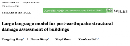 近日,学院土木工程系戴靠山教授团队王健泽副研究员在《Computer-Aided Civil and Infrastructure Engineering》(Computer-Aided Civ. Inf.)在线发表了题为《Large language model for post-earthquake structural damage assessment of buildings》的论文。学院2022级土木工程专业博士研究生江永清为论文唯一第一作者,王健泽副研究员为论文唯一通讯作者,91黑料